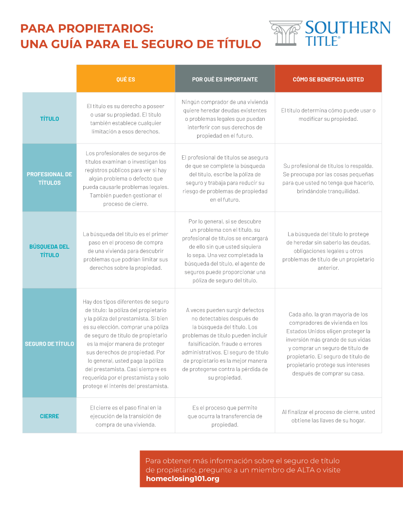 Here are some additional Spanish language resources developed by the American Land Title Association:
